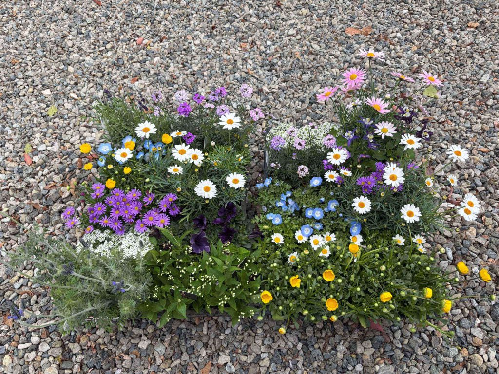 3月31日、植栽をメンテナンスしていただきました。春らしい明るくきれいな季節のお花を入れていただきました。